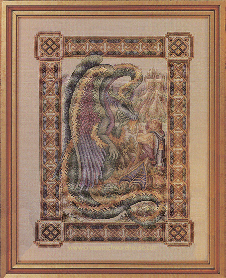 The Storyteller... Designed by Teresa Wentzler. Size: 12.5"x 16.75" (31.8 x 42.6cm) A Counted Cross Stitch CHART ONLY Design. A classic medieval tapestry border encases a dragon in the true Teresa Wentzler style. The detail is fabulous! Features include the beautiful medieval format look and the intriguing Celtic-designed border, with superb color combinations. Only a few CHARTS are still Available!