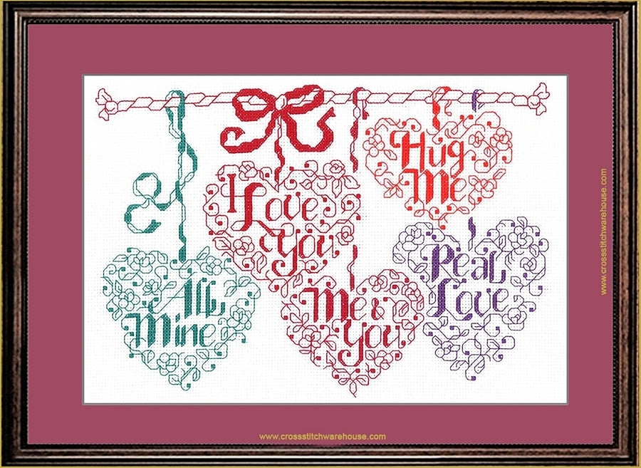 Let's Eat Valentine Candy... CHART ONLY. Finished Size Approx: 10.6"x 7.1" (26.9 x 18cm) Stitch Count: 149v x 99h. The design uses 5 Colors. This pattern would make for a wonderful great gift for your Valentine. It's really Chocolate time anytime, so let's eat Valentine chocolate Candy. This cross stitch design is the perfect gift without the calories! Candyaholic's you'll love this one! A compassionate cross stitch featuring small heart shape lace sachets design by The Renowned cross stitch designer Ursula Michael. A Cross Stitch pattern by The American Imaginating Studio... Design Model is stitched on a 15"x 18" 14ct. White Aida.