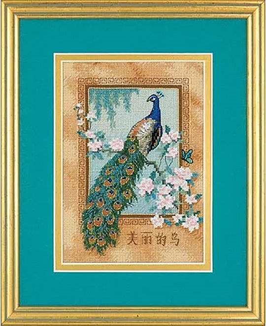 Beautiful Bird... GOLD PETITE in Counted Cross Stitch by Dimensions. Size: 5"x 7" (13 x 18cm) -- Beautiful bird -- that's what the Chinese characters mean, and that's what this design so elegantly portrays. Stitched on with gold metallic thread highlights, this regal bird and its dreamy background evoke the romance and mystery of the Orient. ~ Designed by Dimensions.