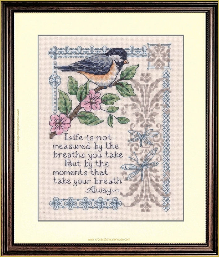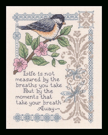 Breath Taker... CHART & FABRIC. Stitch Count: 100v x 135h. Size Approx: 8"x 11" (20 x 28cm) A beautiful sweet inspirational rustic country inspired cross stitch design by Diane Arthurs. Cross Stitch pattern by The American Imaginating Studio. Cross Stitch Design is stitched on 14ct. Natural Aida. The design comes as a chart & 14ct. Natural Aida.