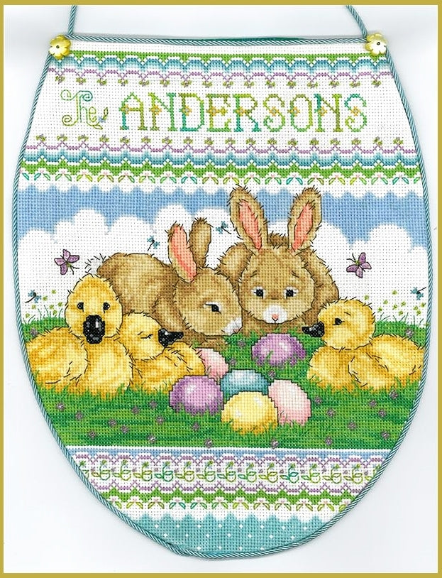 Bunnies & Ducks... COMPLETE. Finished Size Approx: 10"x 14" (25.4 x 35.5cm) Stitch Count: 138v x 161h. One of two in a series. This darling bag will add to your home decor. Additional finishing materials are needed including 1/2 yd (137.1cm) of fabric for backing and lining, fusible fleece and decorative braid and are not included. Another sweet nursery cross stitch design by Renowned cross stitch designer Joan A. Elliott.
