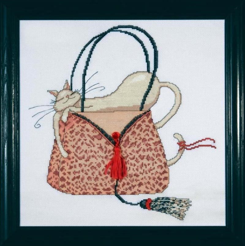 Leopard Purse... Counted Cross Stitch Kit by Design Works. Finished Size: 12"x 12" (30.5 x 30.5cm) Note the Ultra Modern Kitty! Leopard Purse, is another Modern Classical cross stitch design which is suitable for display in any modern home or apartment. LOOK for other "Modern Classics" in this theme on the Site. Cross Stitch kit includes: 14ct. White Aida Fabric, needle, 100% cotton floss & easy-to-read instructions.