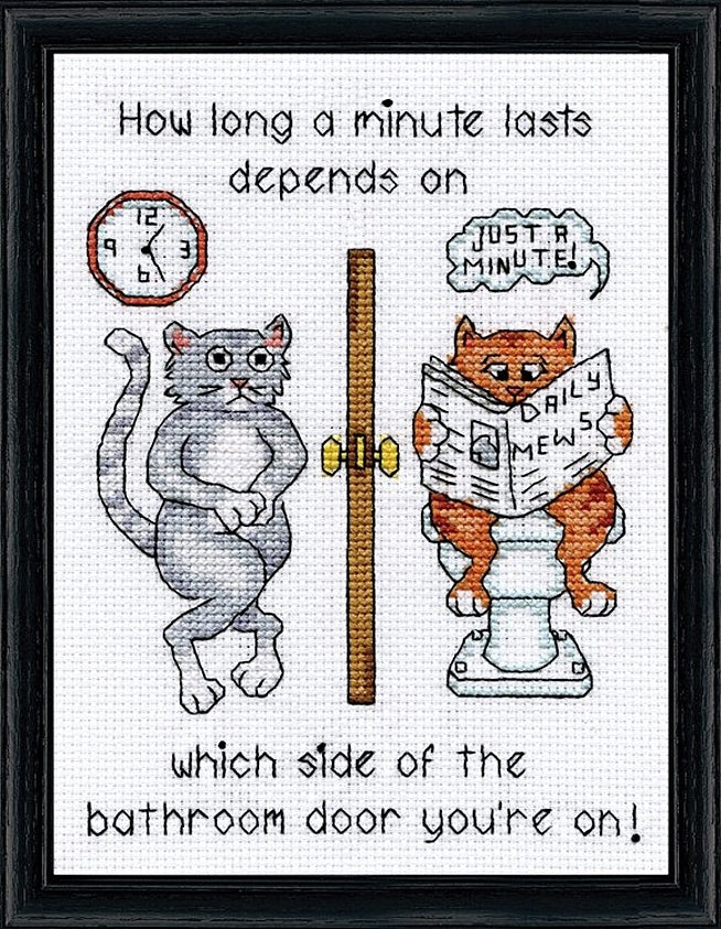 Bathroom Door... MINI Counted Cross Stitch Kit by Design Works. Size: 5"x 7" (13 x 18cm) Mini Novelty kits are popular! This one has a cross stitch message to get across to who may be on the relieved side of the door. Cross stitch will make an ideal gift stitched for a close friend or whomever!