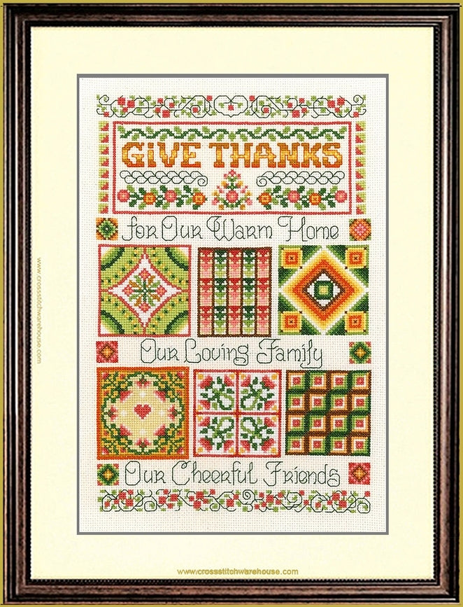 Gratefulness... COMPLETE. Finished Size Approx: 9"x 13" (23 x 33cm) Stitch Count: 116v x 176h. This beautiful design is the perfect way to remind us to give thanks! A cross stitch design inspired by Renowned cross stitch designer Ursula Michael. A Cross Stitch pattern by The Fabulous American Imaginating Studio.
