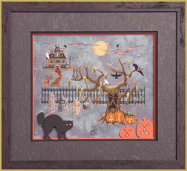 Grimm, Glum, Gloom... Cross Stitch CHART by Glendon Place. Finished Size: 14"x 10.75" (35.5 x 27.3cm) It’s a spooky and ghoulish Halloween night. We all take notice of Hunted Houses in surrounding neighbourhoods that attract our interest, as featured in this cross stitch design. The clouds slowly drift in and out of the glow of the full moon and cast unexpected shadows that make the mind run wild. Stitch Area: 220w X 170h. Stitch Count: 209w X 165h.