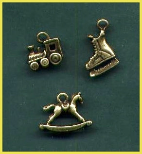 Stock Item: #CH-L170 Gold Skate, Train & Rocking Horse Charms.