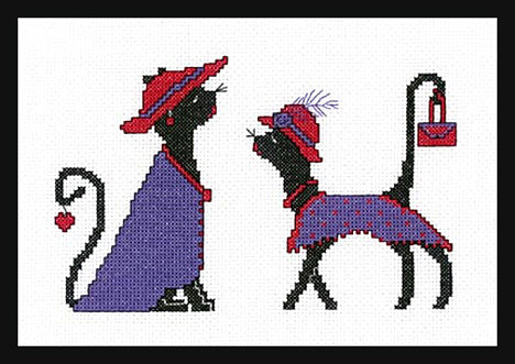 Hoity Toity Cats... Stitch Count: 67v x 107h. Finished Size Approx: 5"x 8" (13 x 20cm) Two good old dolls out for a dam good time! Another in the novelty cross stitch collection of Krazy Kats by Holly Gordon. Cross stitch design by Renowned cross stitch designer Holly Gordon. Cross Stitch pattern. LOOK for the complete collection on our site.
