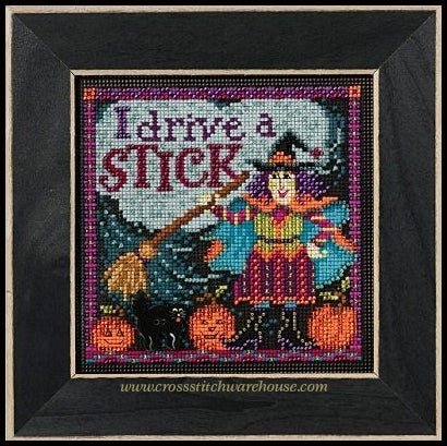 I Drive A Stick... Counted Cross Stitch Buttons & Bead Kit with Frame by MILL HILL... Autumn Series: HALLOWEEN