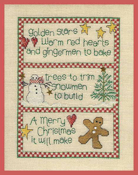 Its A Country Christmas... Cross Stitch CHART by Sue Hillis Designs. Size: 8.6"x 10.2" (21.8 x 25.9cm) A delightful pastel Cross Stitch Design features Dainty Christmas related motifs in a sweet colored palette. Stitch as the chart shows on 16 or 32 count fabric that fits into a standard 8"x 10" frame. The cover model was stitched using Sullivans 100% Egyptian Cotton embroidery floss "over two Threads" on 32ct. Zweigart's Raw Natural linen.