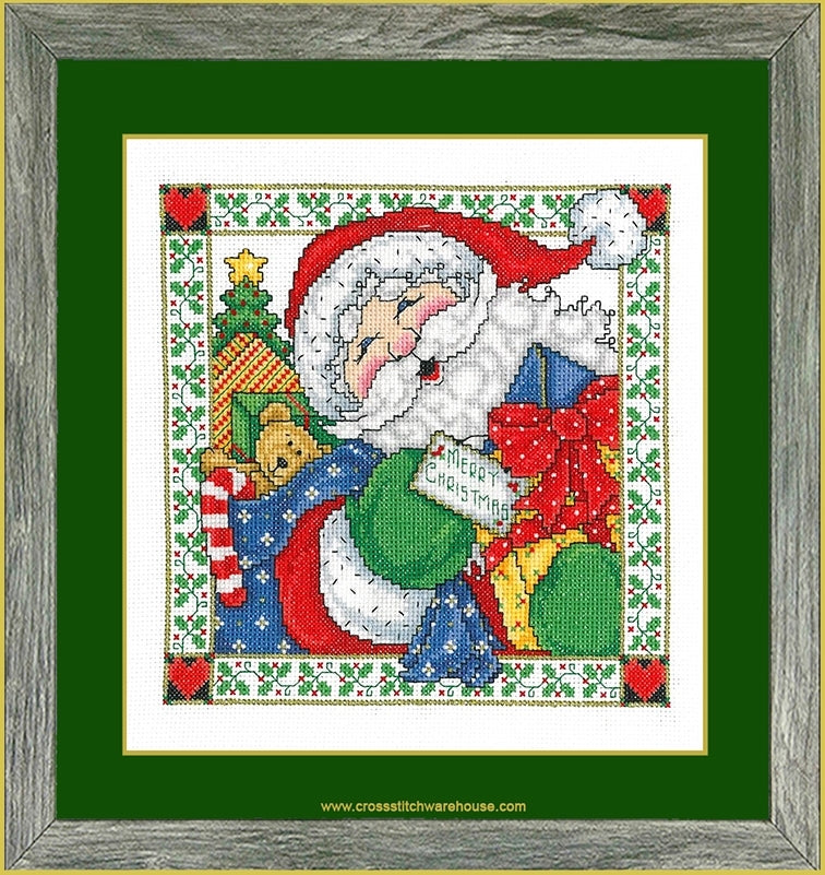 Jolly Santa Ho Ho Ho... COMPLETE. Finished Size Approx: 9"x 9" (23 x 23cm) Stitch Count: 112v x 112h. A beautiful festive design in wonderful Christmas colors! You can almost hear Santa talking from this detailed picture. A festive cross stitch by Renowned cross stitch designer Joan A Elliott. A Cross Stitch pattern by The American Imaginating Studio.