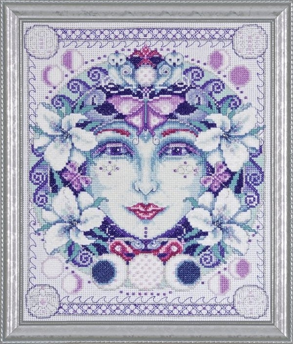Moon... Counted Cross Stitch Kit #2759 by Design Works. Finished Size: 9"x 11" (23 x 28cm) An impressive Astrological cross stitch design that will enhance any study/library. Stitched on 14ct. White Aida, with soft bright colors which gives the design a special fantasy look.