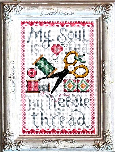 My Soul Is Fed... Cross Stitch KIT. Design by Bobbie Gee Designs. Finished Size: 4"x 6" (10.1 x 15.2cm) A lovely mini sewing sampler with border and verse that warms the heart!.