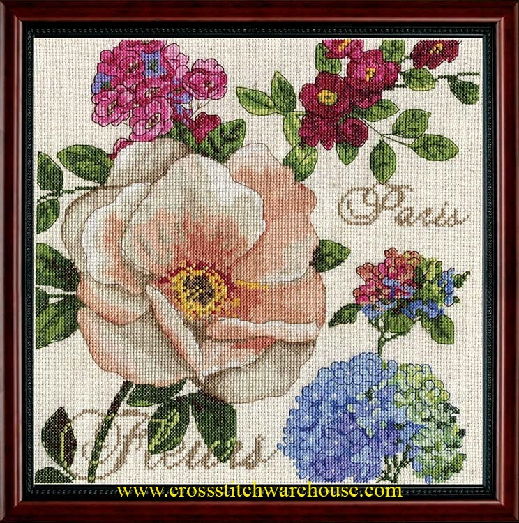 Paris Fleurs... Counted Cross Stitch Kit by Design Works. Finished Size: 10"x 10" (25.4 x 25.4cm) Just Beautiful. Cross Stitch Design has that exquisite continental feel showing a floral parlor look. The Blend of colors are perfect. This Design would also suit a Pillow. Pillow finishing fabric not included.