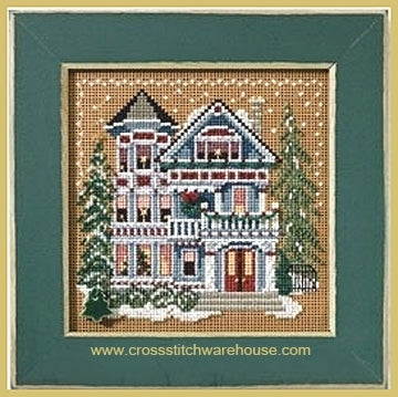 Queen Anne House... Counted Cross Stitch Buttons & Bead Kit with Frame by MILL HILL... Winter Main Street Series: