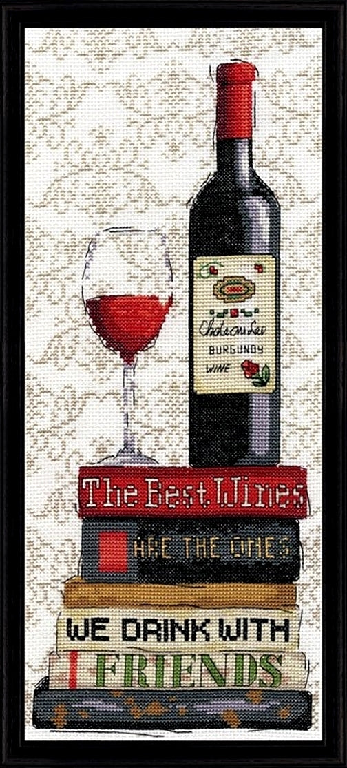 Red Wine... Counted Cross Stitch Kit by Design Works. ~ Design Size: 6"x 14" (15.2 x 35.5cm) Red Wine, one of a pair to decorate your home bar, wine cellar, restaurant, or any appropriate room to suit.