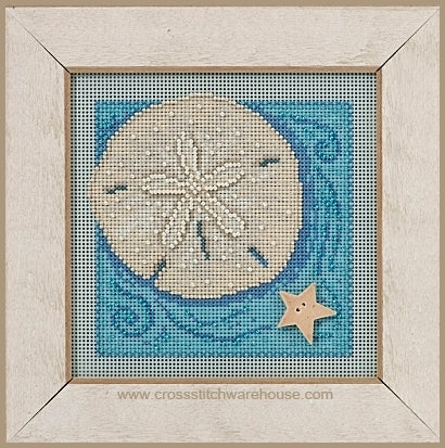 Sand Dollar... Counted Cross Stitch Buttons & Bead Kit with Frame by MILL HILL... Size: 4.75"x 4.75" (12 x 12mm)