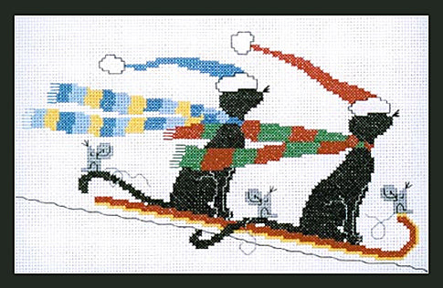 Sledding Cats ... Stitch Count: 79v x 146h. Finished Size Approx: 6"x 10" (15.2 x 25.4cm) Two wacky black kitties having a great time sledding! Another in the novelty cross stitch collection of Silly Snobs Krazy Kats by Holly Gordon. Cross stitch design by Renowned cross stitch designer Holly Gordon. Cross Stitch Chart. LOOK for the complete collection on our site.