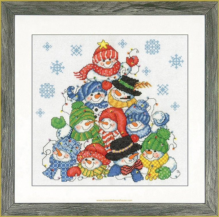 Stacking Snowman... CHART ONLY. Finished Size Approx: 10.5"x 10.5" (26.7 x 26.7cm) Stitch Count: 144v x 145h. One great big pile of smiles! 19 Colors. A beautiful festive design in wonderful Christmas colors! You can almost hear these jolly snowmen singing from this detailed picture. Cross stitch design by Renowned cross stitch designer Ursula Michael. A Cross Stitch pattern by The American Imaginating Studio. Cross Stitch Design model is stitched on 14ct. White Aida.