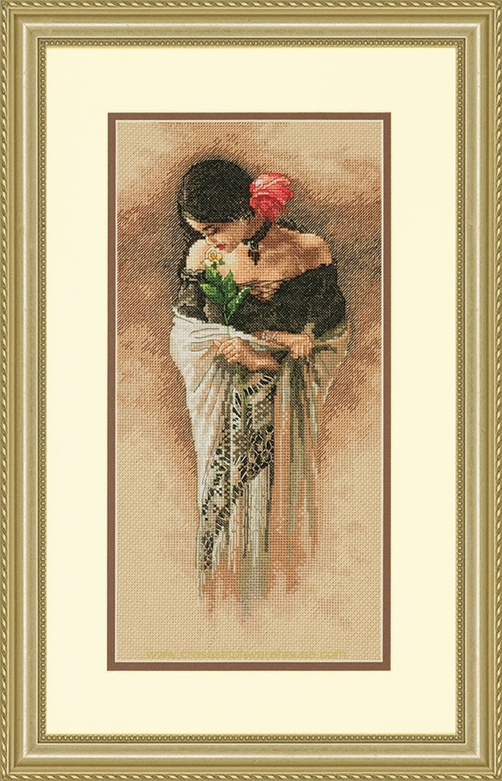 The Rose... Counted Cross Stitch Kit by Dimensions. Finished Size: 7"x 14" (18 x 35.5cm). A Lady with natural beauty and elegance stands in this alluring counted cross stitch design. The Rose features detailed shading and exquisite detailing. I consider this design a masterpiece! Designed by Lee Bogle. Hadley House Licensing, © Lee Bogle 2015. All rights reserved.