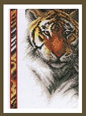 Tiger... MINI Counted Cross Stitch Kit, Made in the USA by Janlynn. Finished Size: 5"x 7" (13 x 18cm) Tiger portrait, a commanding image of this mighty hunter, another in the wildlife series incorporating a Native American band highlighting the design by Roger W. Reinardy.