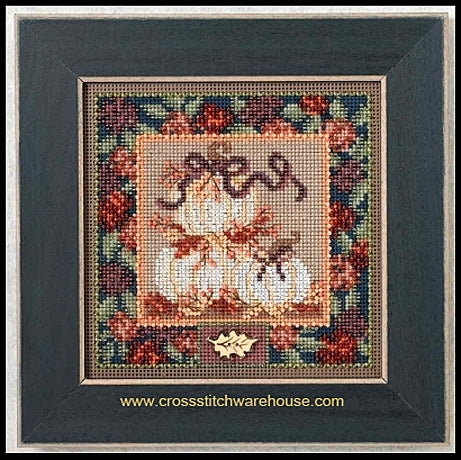 White Pumpkins Kit... Counted Cross Stitch Buttons & Bead Kit by MILL HILL... Autumn Series: HALLOWEEN