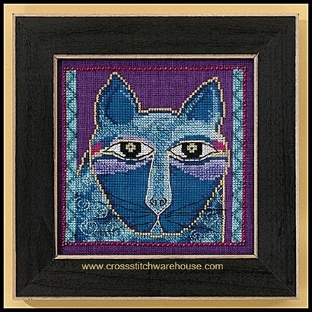 Wild Blue Cat... Counted Cross Stitch Aida, Bead & Frame Kit by MILL HILL... Laurel Burch: Cat Collection.