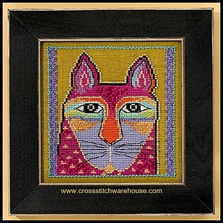 Wild Pink Cat... Counted Cross Stitch Aida, Bead & Frame Kit by MILL HILL... Laurel Burch: Cat Collection.